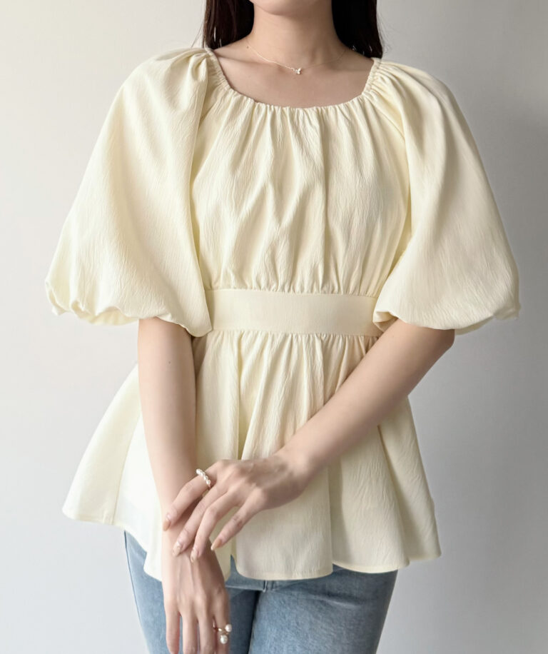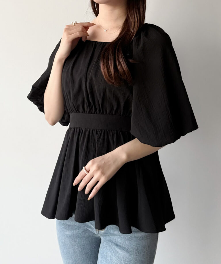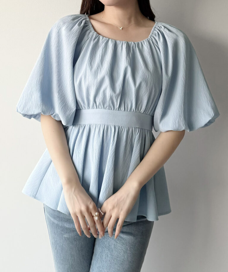 【096】パフスリーブペプラムトップス