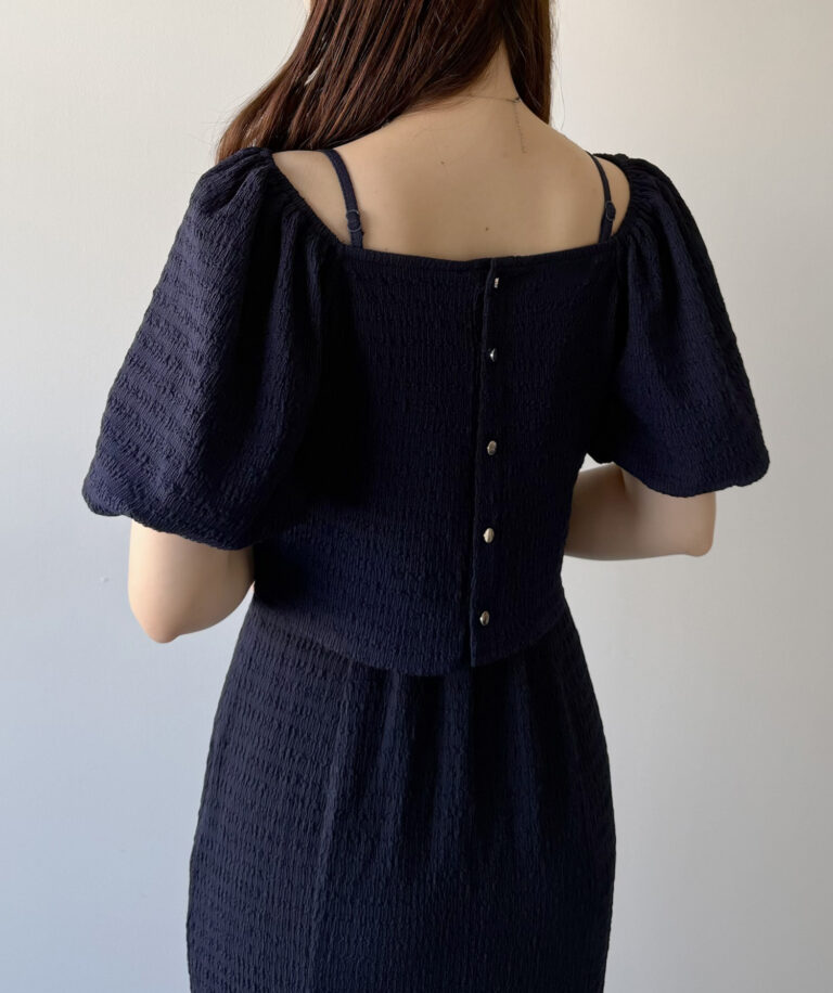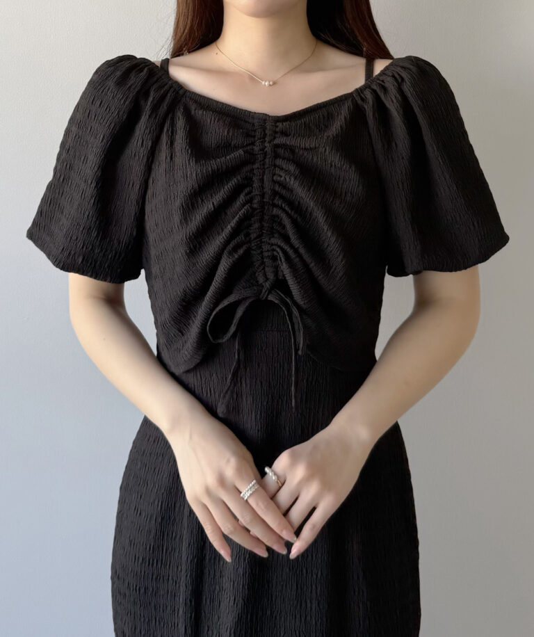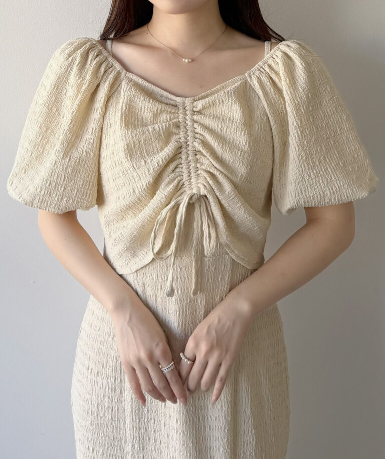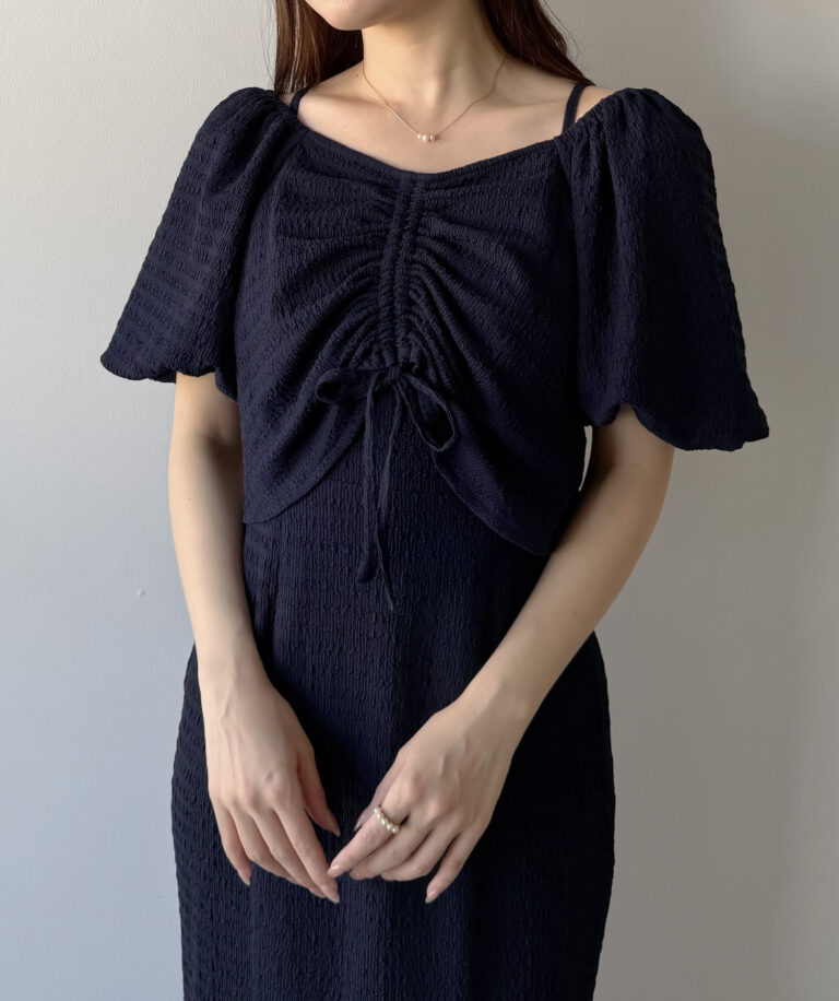 ボレロはフロントと袖にギャザーを入れ、立体感のあるシルエットで女性らしさを演出します。