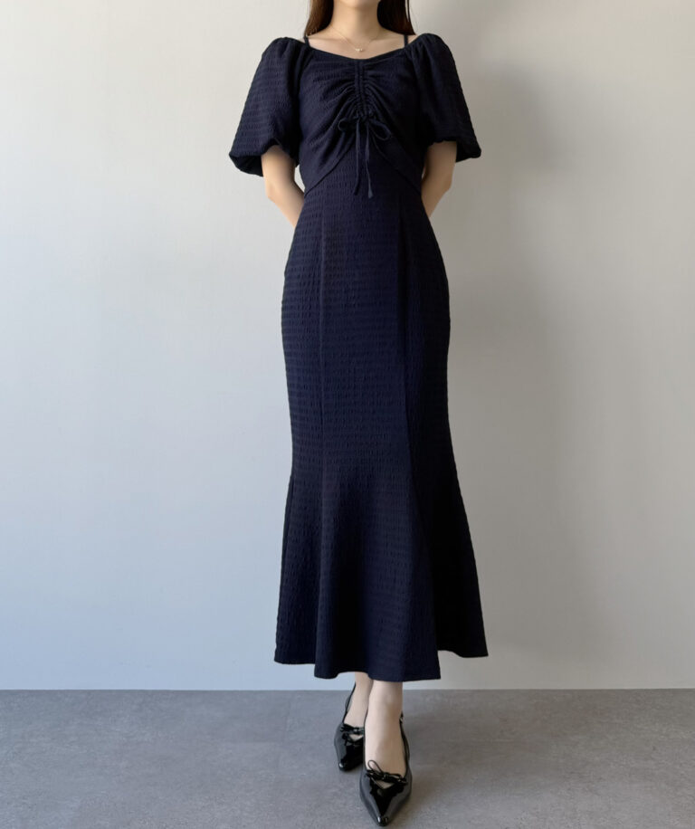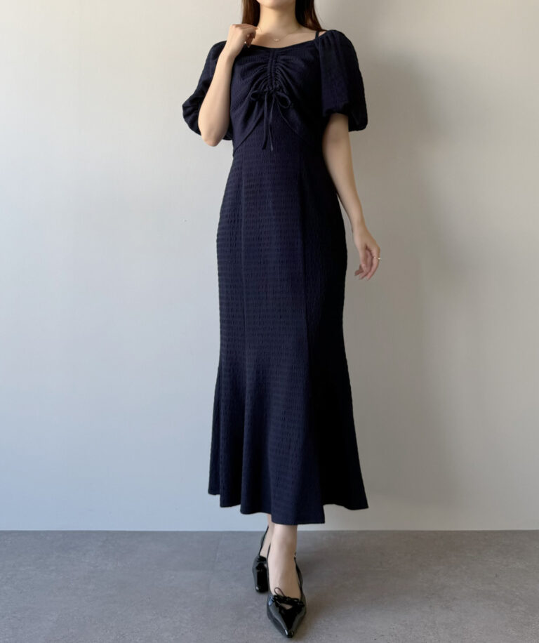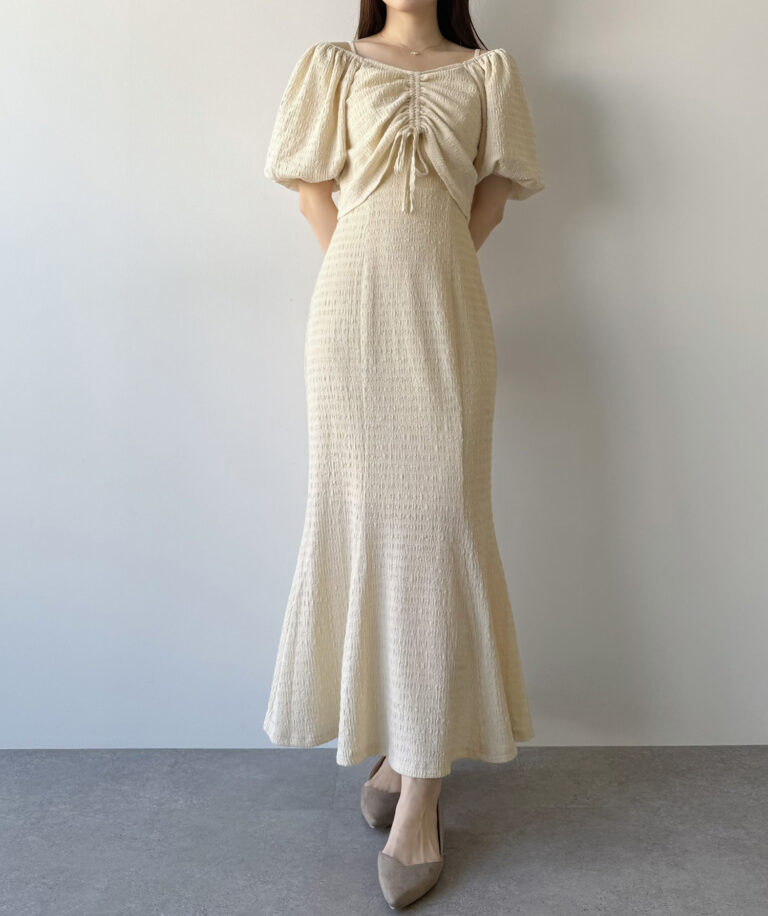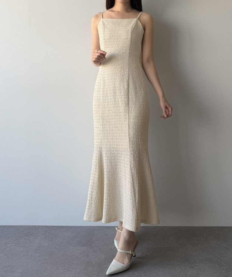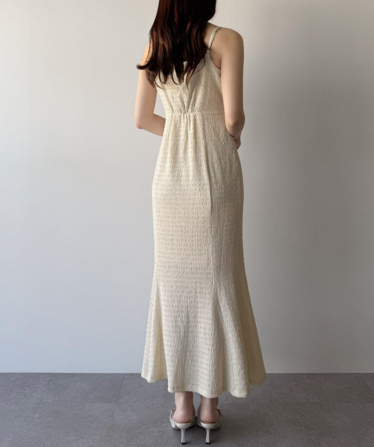 また、キャミワンピはゆるやかなマーメイドラインで